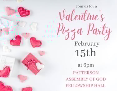 Valentine's Day Pizza Party for Couples & Singles - Saturday, FEB 15th at 6PM (Pizza, games, devotion for relationship reinforcement, etc.)