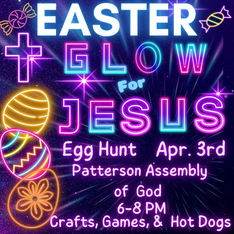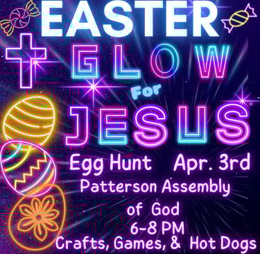 Kid's Easter "Glow for Jesus" Event - Friday, APR 3rd at 6PM (Patterson Assembly of God Fellowship Hall)