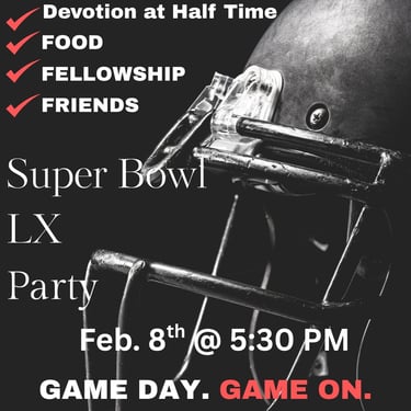 Super Bowl Party - Sunday, FEB 8th at 5:30PM (Patterson Assembly of God Fellowship Hall / Devotion at Half Time / Food & drinks)