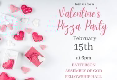 Valentine's Day Pizza Party for Couples & Singles - Saturday, FEB 15th at 6PM (Pizza, games, devotion for relationship reinforcement, etc.)