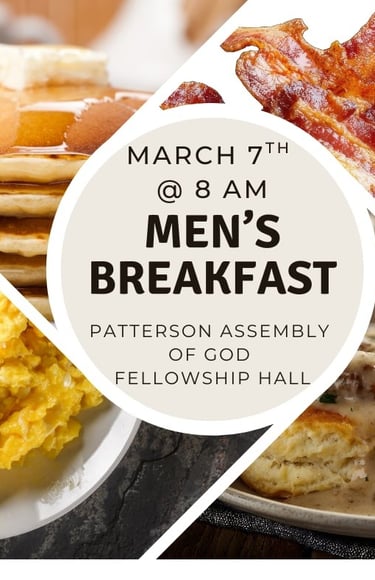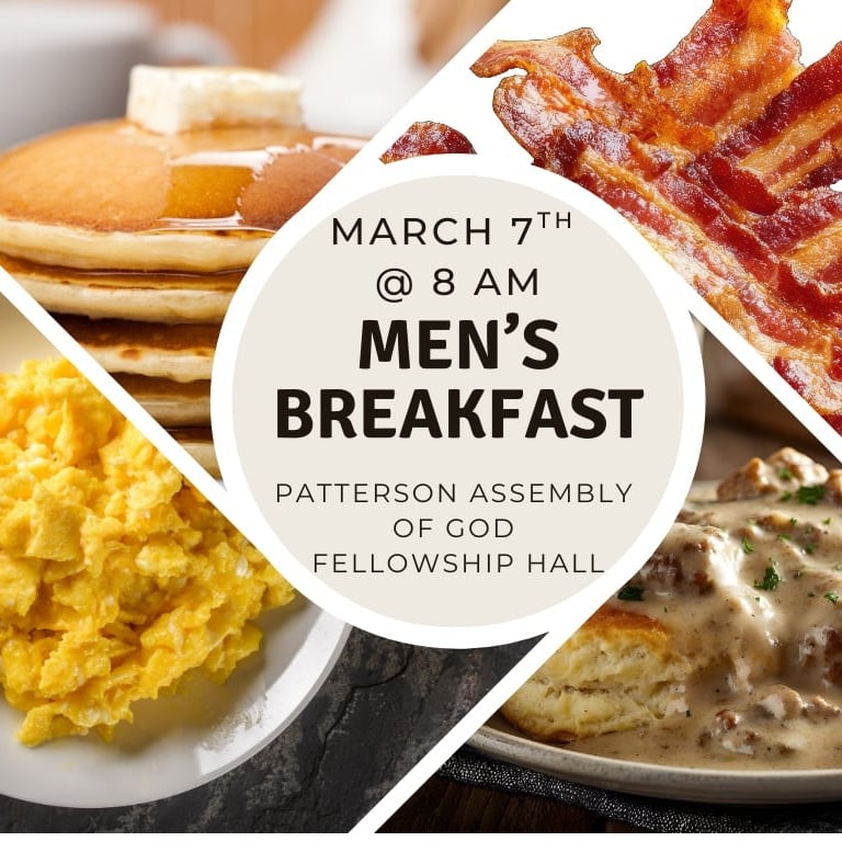 Men's Breakfast - Saturday, MAR 7th at 8AM (Patterson Assembly of God Fellowship Hall / Great Breakfast, Fellowship & Devotion)